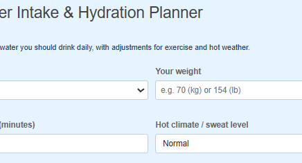 Estimate your ideal daily water intake with our Hydration Calculator. Enter weight, exercise time and climate factor to get a personalized recommendation in litres or […]