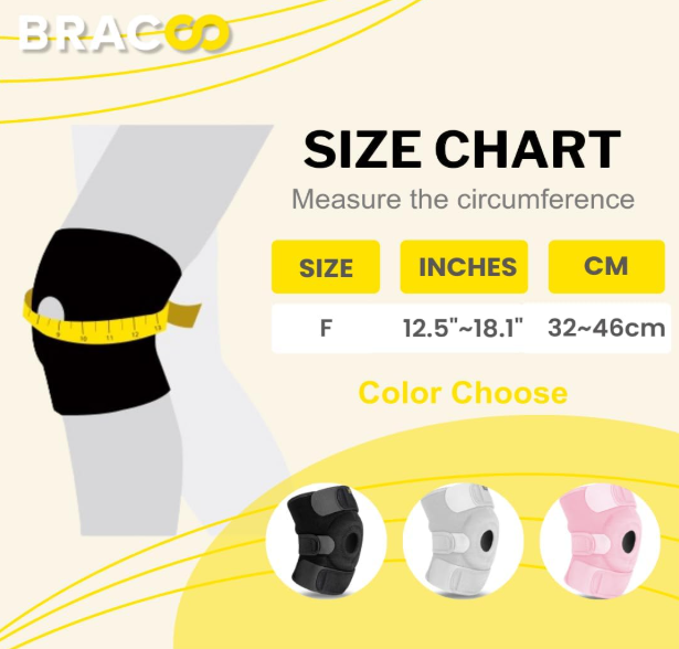 The BRACOO brace is a real all-rounder. It’s ideal if you’re dealing with arthritis, runner’s knee, ligament strains, swelling, sprains, or tendonitis, offering both comfort and stability. The breathable neoprene, with its tiny perforations, helps keep sweat, odours, and irritation at bay even if you’re pushing yourself hard. Plus, it’s designed to fit either leg, with an adjustable circumference from 32 to 46 cm (12.5" to 18"), so it works for most people.