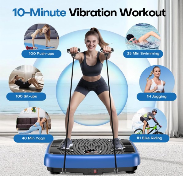 The included resistance bands allow you to engage your arms and upper body while standing on the plate. This makes sessions feel more active and purposeful. Without the bands, it can feel somewhat passive, especially if you’re just standing still. With them, you can add simple exercises like curls, rows, or presses. I think this small addition helps justify the purchase, as it encourages more complete workouts rather than purely passive vibration.