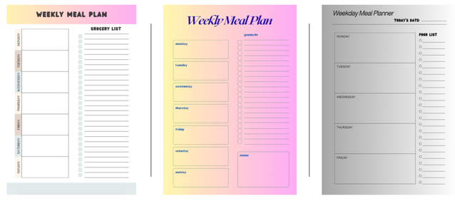 Free Meal Planners – Download & Print Posted on 02/10/202502/10/2025 by Peter | No Comments Here is a selection of food and meal planners which can be downloaded and printed in your own home or office. Meal Food Planner – Option 1 Meal Food Planner – Option 2 Meal Food Planner – Option 3 Recent Posts Free Meal Planners – Download & Print Free Exercise Workout Planners Free Calendars for 2026 VO₂ Max Estimator Calculator New Pace Calculator Recent CommentsPeter on iWalk Treadmill Review 2025 – Worth the Money?Tony Lynch on iWalk Treadmill Review 2025 – Worth the Money?Bob Roman on How to Lose Weight on a TreadmillMichel Maling on How to buy a Treadmill – For YOUR Needspasindu dimanka on How to Lose Weight on a Treadmill Posted in Tools/Calculators and tagged food planner, free food planner, free meal planner, meal planner.
