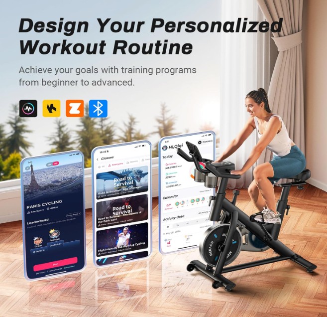 What stands out most is the tech angle. MERACH pushes its self-developed app alongside compatibility with Zwift and Kinomap, plus syncing with Google Fit and Apple Health. For a bike in this bracket, that level of connectivity is not always guaranteed. Whether that translates into a genuinely engaging experience is something we will examine later.