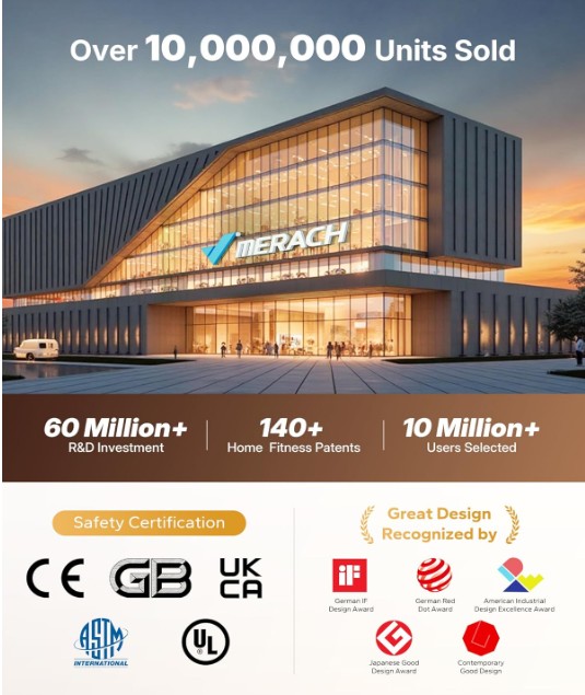 MERACH uses a multi-slot silent belt drive system. In theory, this should reduce mechanical noise compared to chain-driven alternatives. For people exercising in flats or shared homes, that could be a meaningful benefit. It may not be completely silent, especially under heavy resistance, but it is clearly designed with home use in mind.