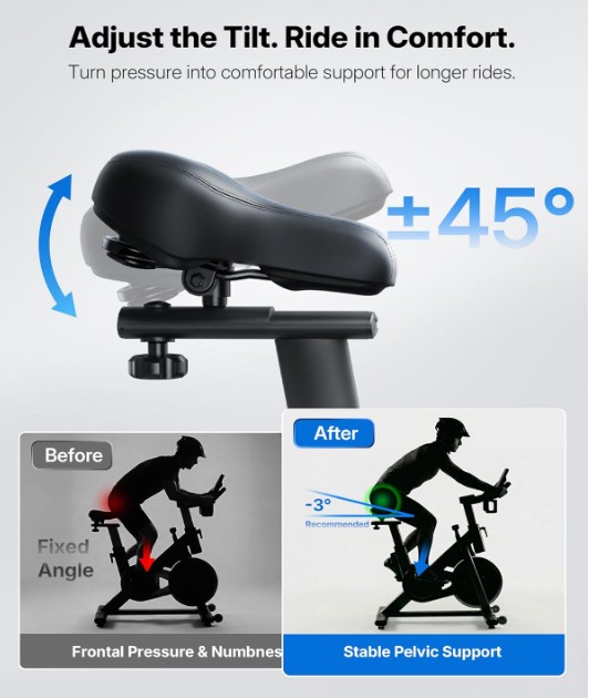 The dual-triangle frame design aims to improve stability during harder efforts. With friction resistance offering infinite adjustment rather than fixed levels, the experience is likely to feel more like a traditional spin bike. That gives flexibility, though it also means resistance control is manual and not digitally calibrated.