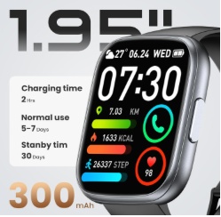 Save over £100 on the Poounur Smart Fitness Watch, now under £25! This 1.95" HD smart watch with Bluetooth 5.3 calling function, heart rate monitoring, and sleep tracking, 110+ sport modes offers premium features at a budget-friendly price.