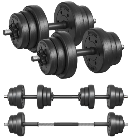 Upgrade your home gym for under £25! The SONGMICS Adjustable 20kg Dumbbell Set is durable, versatile, and perfect for all strength levels. Customisable weights, non-slip grip, and barbell option included.