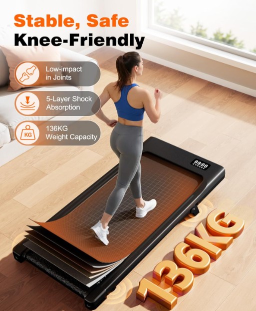 When it comes to comfort, this walking pad doesn't disappoint. The five-layer running belt truly shines here—anti-skid and shock-absorbent features make sure your jogs or walks are kind to your feet and joints. The attention to detail in these layered belts firmly prioritizes user comfort and safety, especially important for those racking up a lot of steps.